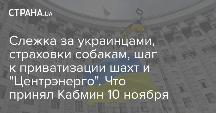 Слежка за украинцами, страховки собакам, шаг к приватизации шахт и "Центрэнерго". Что принял Кабмин 10 ноября