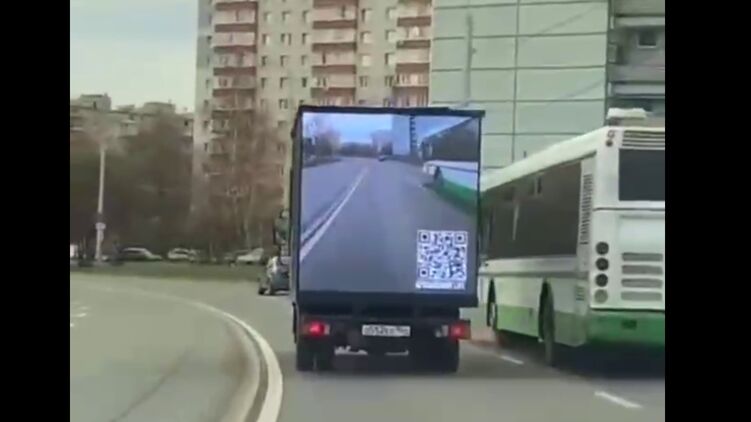 В Москве появились грузовики, на задней части кузова которых расположен огромный дисплей. На экране транслируется запись с видеорегистратора, что позволяет машинам делать более безопасный обгон.