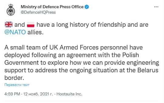 Правда, речь идет о "небольшой группе" и только представителей инженерных войск, для помощи в оборудовании границы (Польша ранее и сама говорила, что британцы помогут с заградительными сооружениями). Но сам прецедент важен.