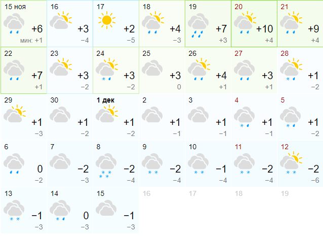 В целом, только в первой половине декабря прогнозируют период стабильной снежной зимы - с 8 по 14 декабря. Температура воздуха в это время ожидают в пределах -4...-6.