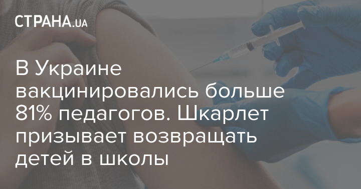 В Украине полный цикл вакцинации от COVID-19 получили более 528 тыс. работников учреждений общего среднего образования - это больше 81% от общего количества. При этом одной дозой вакцины привито 95,4% работников школ.