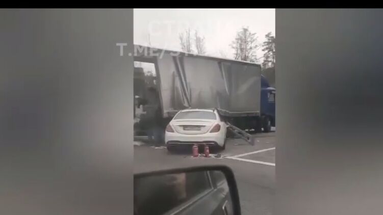 В сети появилось видео с места ДТП.На кадрах видно легковой автомобиль, в котором ехал народный избранник - Mercedes S 560 и грузовик. Судя по всему, удар был достаточно большой силы, из кузова грузовика на автомобиль даже высыпались мешки. Рядом стоит автомобиль Национальной полиции.