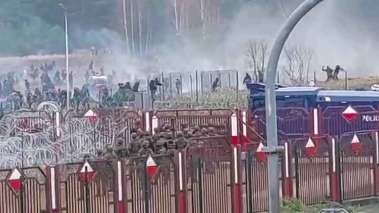 В сети появились видео противостояния мигрантов и польских пограничников.