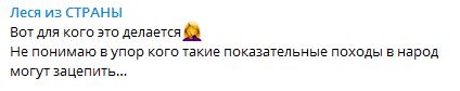 "Вот для кого это делается? Не понимаю в упор, кого такие показательные походы в народ могут зацепить…" - написала ведущая блога "Ясно.Понятно" Олеся Медведева.