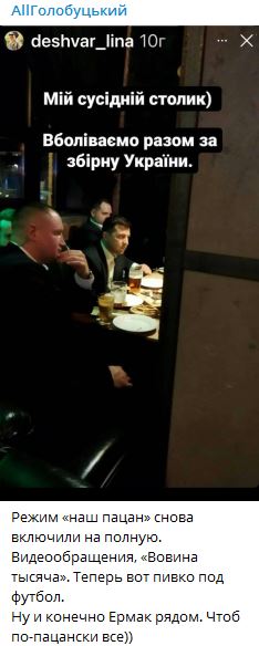 "Режим "наш пацан" снова включили на полную. Видеообращения, "Вовина тысяча". Теперь вот пивко под футбол. Ну и конечно Ермак рядом. Чтоб по-пацански все", - написал политолог Алексей Голобуцкий.