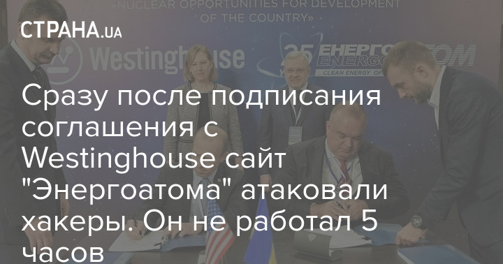 Сразу после подписания соглашения с Westinghouse сайт "Энергоатома" атаковали хакеры. Он не работал 5 часов