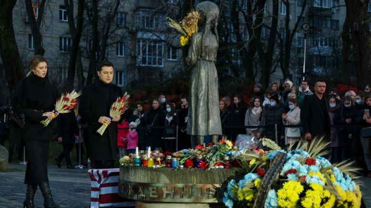 Сегодня, 27 ноября, в Украине День памяти жертв голодоморов. В связи с этим память умерших в 1932-1933 годах почтили президент Украины Владимир Зеленский вместе с первой леди Еленой Зеленской, председателем Верховной Рады Русланом Стефанчуком, руководителем Офиса Президента Андреем Ермаком и премьер-министром Денисом Шмыгалем.