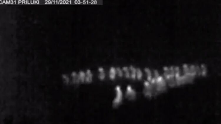 В российских телеграмм-каналах разгоняется видео якобы расстрела группы беженцев украинскими пограничниками. На видео, снятом, как сообщается, ночью в инфракрасном диапазоне, группа людей движется цепочкой, а затем разбегается.