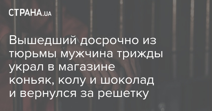В Тернопольской области мужчина, осужденный за кражу, досрочно вышел из тюрьмы за образцовое поведение и снова попался на воровстве. Три раза он воровал один и тот же набор продуктов: коньяк, шоколад и колу.