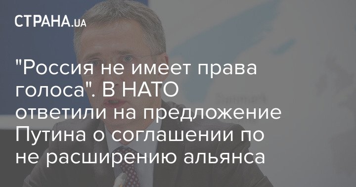 Генеральный секретарь НАТО Йенс Столтенбер в ответ на предложение президента РФ Владимира Путина дать юридические гарантии не расширения альянса на восток, заявил, что Россия не имеет права налагать ограничения на вступление стран, в том числе и Украины, в НАТО.