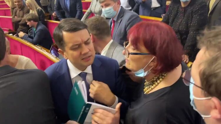 На видео Третьякова и Разумков стоят в окружении других народных избранников и говорят на немного повышенных тонах. Судя по всему, они обсуждают, кто будет обсуждать правки к государственному бюджету.