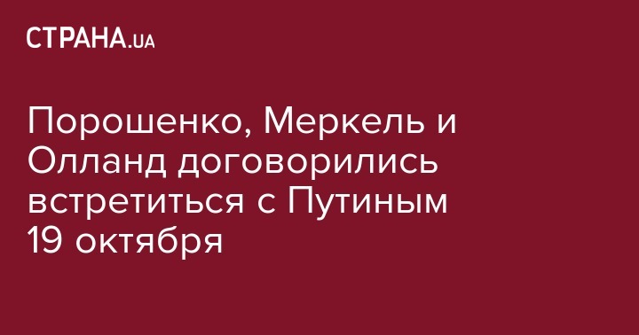 Порошенко, Меркель и Олланд договорились встретиться с Путиным 19 октября
