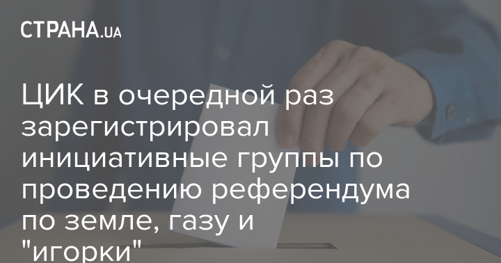 Центральная избирательная комиссия (ЦИК) Украины зарегистрировала четыре группы, которые инициировали всеукраинский референдум по вопросам газа, приватизации, рынка земли, игорного бизнеса.