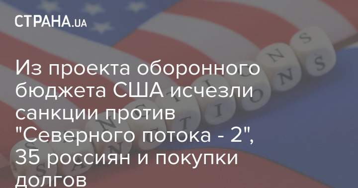 В США представили оборонный бюджет страны без санкций, касающихся суверенного долга России и "Северного потока - 2".