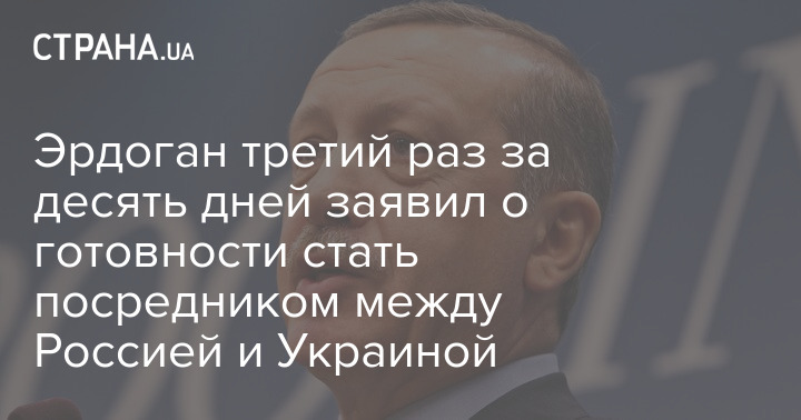 Эрдоган третий раз за десять дней заявил о готовности стать посредником между Россией и Украиной