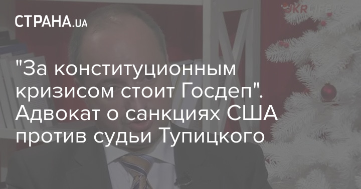 Адвокат Александра Тупицкого Ростислав Кравец, который ранее назвал отказ Конституционного суда Украины принимать новых судей неудачной попыткой Зеленского "сломать суд через колено", в комментарии "Стране" заявил, что санкции США против его клиента свидетельствуют о том, что за конституционным кризисом в Украине стоит Государственный департамент.
