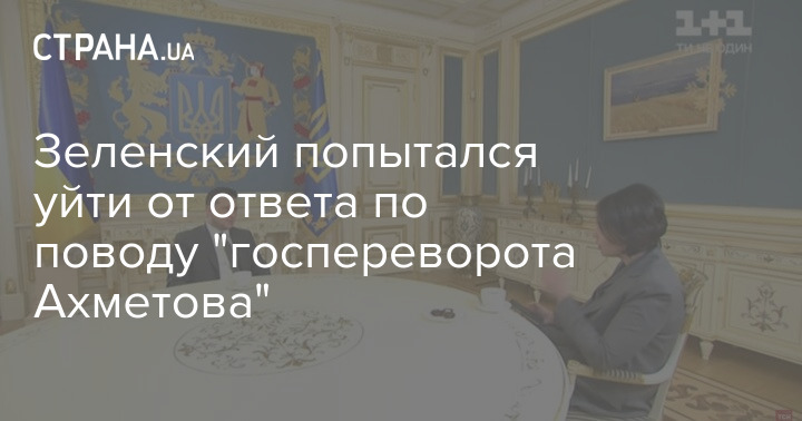 Во время интервью телеканалу "1+1" 10 декабря Владимир Зеленский попытался уйти от вопроса журналистки о том, что происходит с госпереворотом с участием Рината Ахметова, который президент анонсировал с 1 декабря.