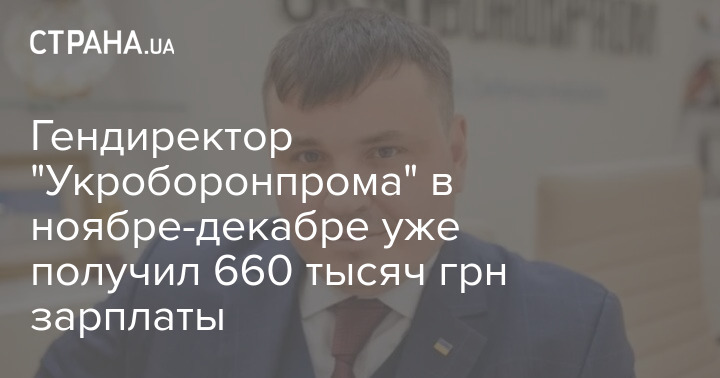 Гендиректор "Укроборонпрома" в ноябре-декабре уже получил 660 тысяч грн зарплаты