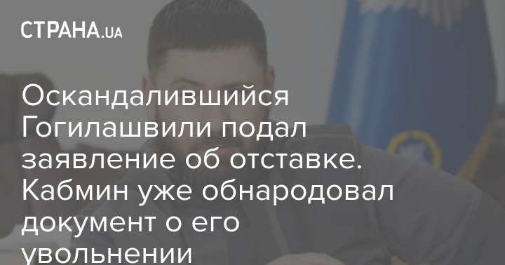 Оскандалившийся Гогилашвили подал заявление об отставке. Кабмин уже обнародовал документ о его увольнении