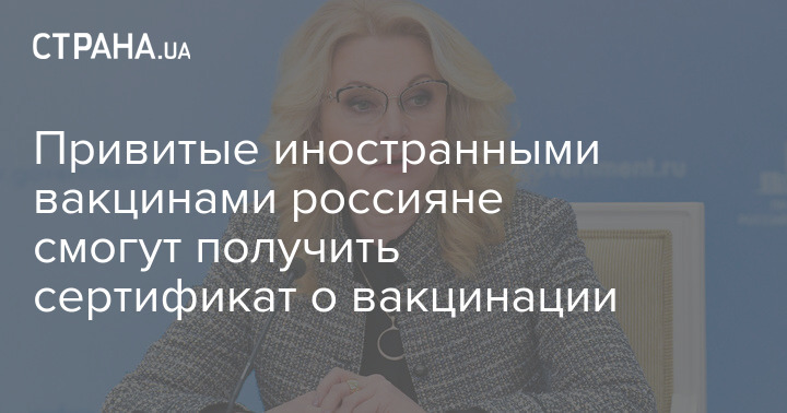 Вице-премьер России Татьяна Голикова сообщила, что россияне, привившиеся иностранными вакцинами от коронавируса, смогут получить сертификат о вакцинации на полгода после теста на антитела.