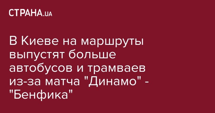 Сегодня, 19 октября, в Киеве на время проведения матча Лиги Чемпионов между "Динамо" и "Бенфикой" будет увеличено количество наземного общественного транспорта. Об этом сообщает официальный сайт КП "Киевпастранс".