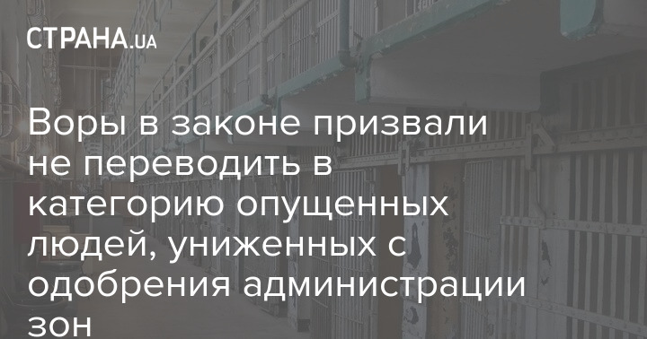 Воры в законе призвали заключенных не определять в "опущенные" (самая низкая ступень тюремной иерархии) подвергшихся пыткам мужчин, которых насиловали с одобрения администрации зон.