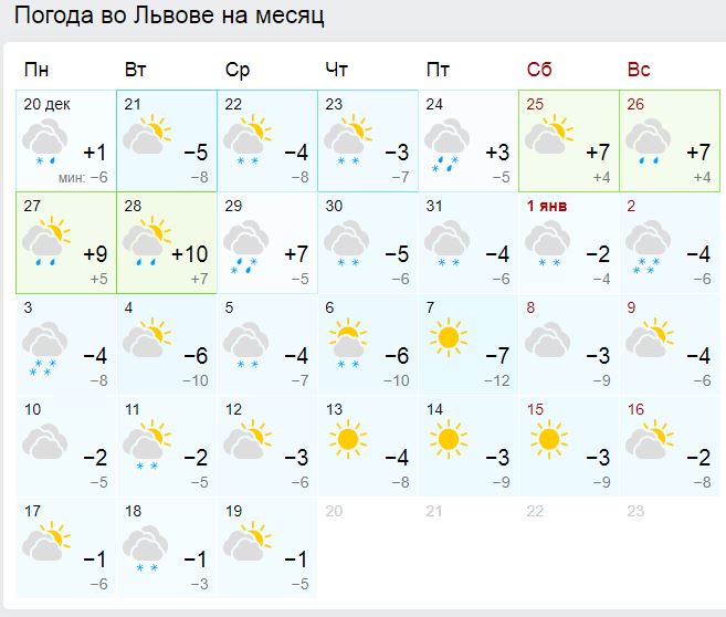 Прогноз погоды во Львове. Данные с сайта gismeteo.ua