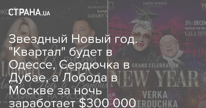 Российские организаторы концертов говорят, что в их стране новогодний гонорар Лободы может достигнуть в этот раз рекордной суммы в $300 000 (за несколько выступлений по городу), а праздничный ценник Ани Лорак стартует от $100 000.