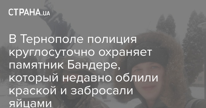 В Тернополе работники полиции будут круглосуточно охранять памятник Степану Бандере на улице Соломии Крушельницкой, который недавно облили краской, а через некоторое время забросали куриными яйцами.
