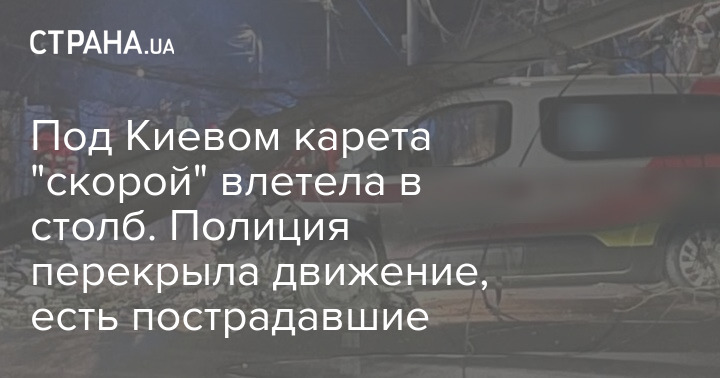 Под Киевом карета "скорой" влетела в столб. Полиция перекрыла движение, есть пострадавшие