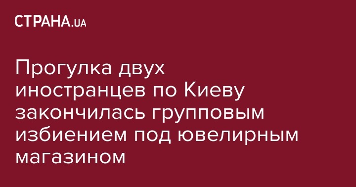 Пострадавшие обратились в Печерское управление полиции. Как стало известно, в момент, когда иностранцы проходили мимо ювелирного магазина на них напала группа неизвестных, один из которых ударил потерпевшего в лицо, после чего началась драка.