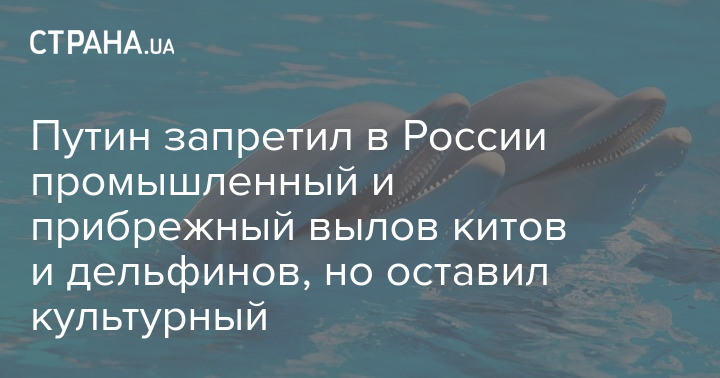Президент Российской Федерации Владимир Путин подписал закон, запрещающий промышленный и прибрежный вылов китов, дельфинов и морских свиней.