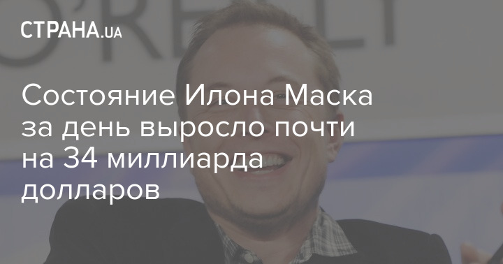 Американский предприниматель, генеральный директор кампаний Tesla и SpaceX Илон Маск, который в октябре прошлого года стал самым богатым человеком в истории, за день увеличил свое состояние на 33,8 миллиарда долларов. Благодаря росту акций компании Tesla оно выросло до 304,2 млрд долларов.