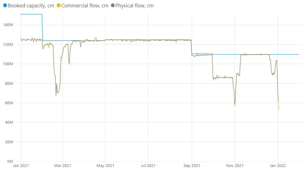 Также "Газпром" не стал заказывать дополнительную мощность для транзита газа через Украину в январе, а для транзита через Польшу забронировал на январь 19,26 млн кубов из предложенных 89,1 млн.