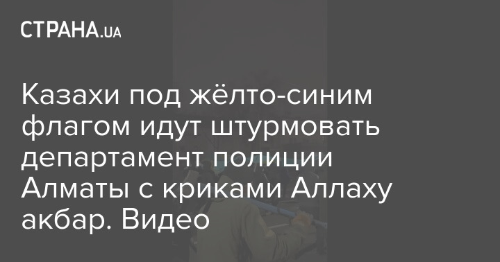 Казахи под жёлто-синим флагом идут штурмовать департамент полиции Алматы с криками Аллаху акбар. Видео