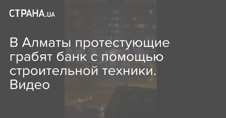 В городе Казахстана Алматы, где в течение нескольких дней акции протеста переросли в массовые беспорядки и грабежи, мародеры таранят банк с помощью строительной техники.