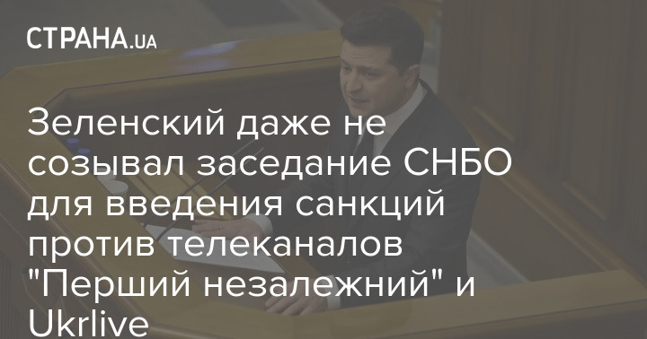 Журналисты выяснили, что президент Владимир Зеленский для введения 28 декабря 2020 года санкций против медиахолдинга "Новости" (в который входят "NewsOne", "ZiK", "112 Украина", "Перший незалежний" и "Ukrlive"), ООО "Тайм медиа" (логотип "Перший незалежний") и ООО "Телепростір" (логотип "Ukrlive"), не собирал перед этим заседание СНБО.