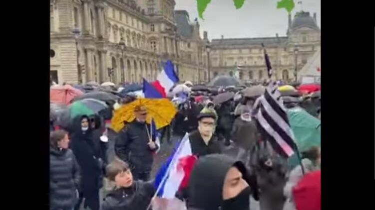 Жители Парижа, несмотря на дождливую погоду, вышли на первую в этом году акцию протеста против введения вакцинных пропусков.