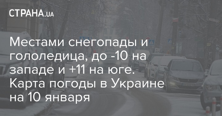Местами снегопады и гололедица, до -10 на западе и +11 на юге. Карта погоды в Украине на 10 января
