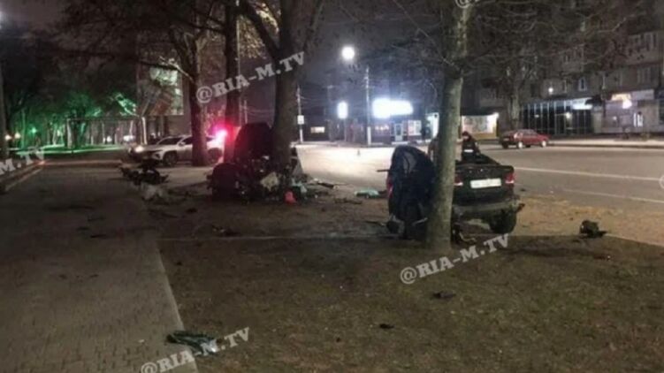 В Мелитополе Запорожской области произошло ДТП, в котором легковое авто разорвало пополам. В результате аварии погибли два человека.
