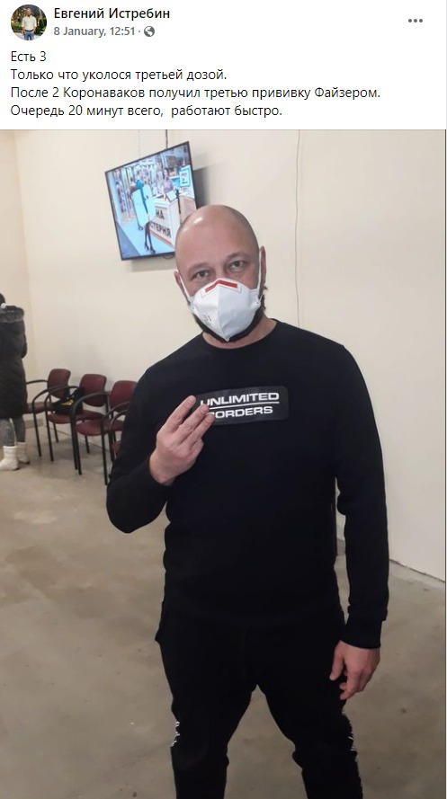 При этом блогер Евгений Истребин укололся третьей дозой без проблем. Отметил, что прождав в очереди 20 минут, получил прививку Пфайзером после полного курса вакцинации Коронаваком.