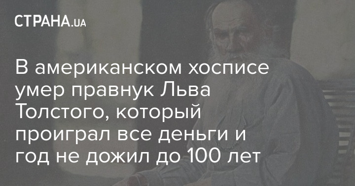 В американском хосписе умер правнук Льва Толстого, который проиграл все деньги и год не дожил до 100 лет