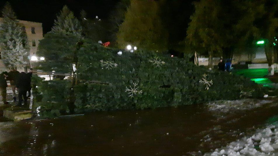 Особенно досталось северным регионам. В Сумской области в Кролевце новогоднюю ёлку на площади не удержали даже шесть тросов.