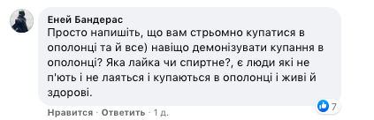 "Просто напишите, что вам стремно купаться в проруби, и все. Зачем демонизировать купание в проруби? Какая брань или спиртное? Есть люди, которые не пьют и не ругаются, купаются в проруби, живы и здоровы", — написал Эней Бандерас.