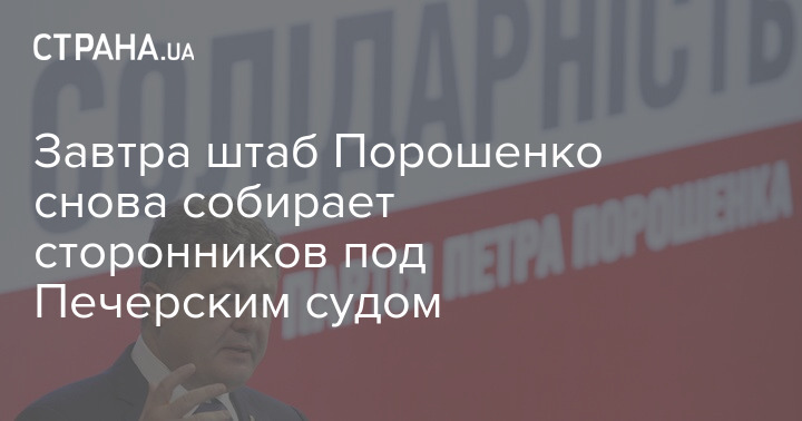 Политическая партия "Европейская солидарность", главой которой является недавно вернувшийся в Украину экс-президент страны Петр Порошенко, в соцсетях созывает всех завтра на акцию под Печерский суд. Ее начало - в 13:00.