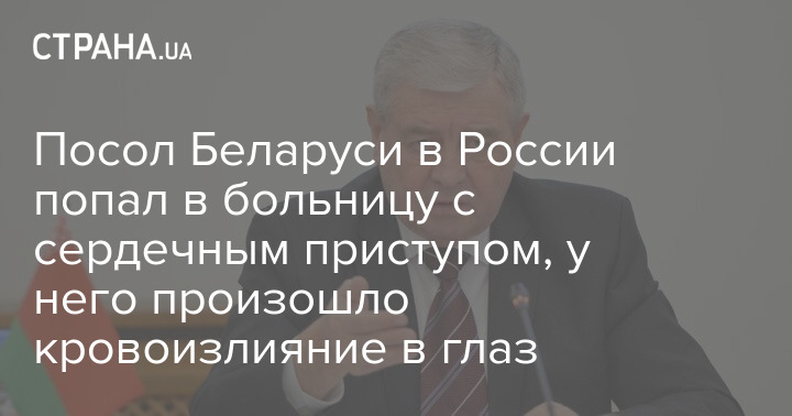 Посол Беларуси в России попал в больницу с сердечным приступом, у него произошло кровоизлияние в глаз