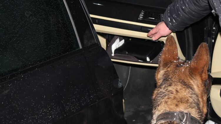 Служебная собака учуяла оружие в машине. Фото: Госпогранслужба Украины