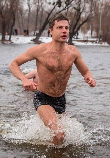 Илья Кива из ОПЗЖ, исповедующий православие и пропагандирующий здоровый образ жизни, также нырнул в воду ночью со словами: "Во имя нашего Иисуса Христа и во спасение нашей грешной души".