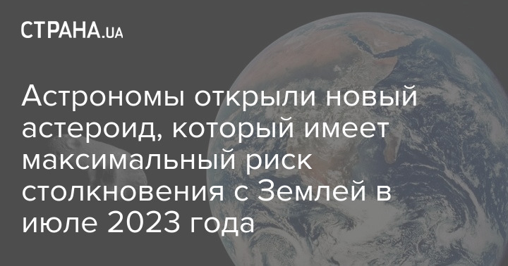 Астрономы открыли новый астероид, который имеет максимальный риск столкновения с Землей в июле 2023 года