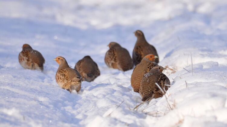 Чернобыльский заповедник показал фото серых куропаток, ночующих на белом снегу